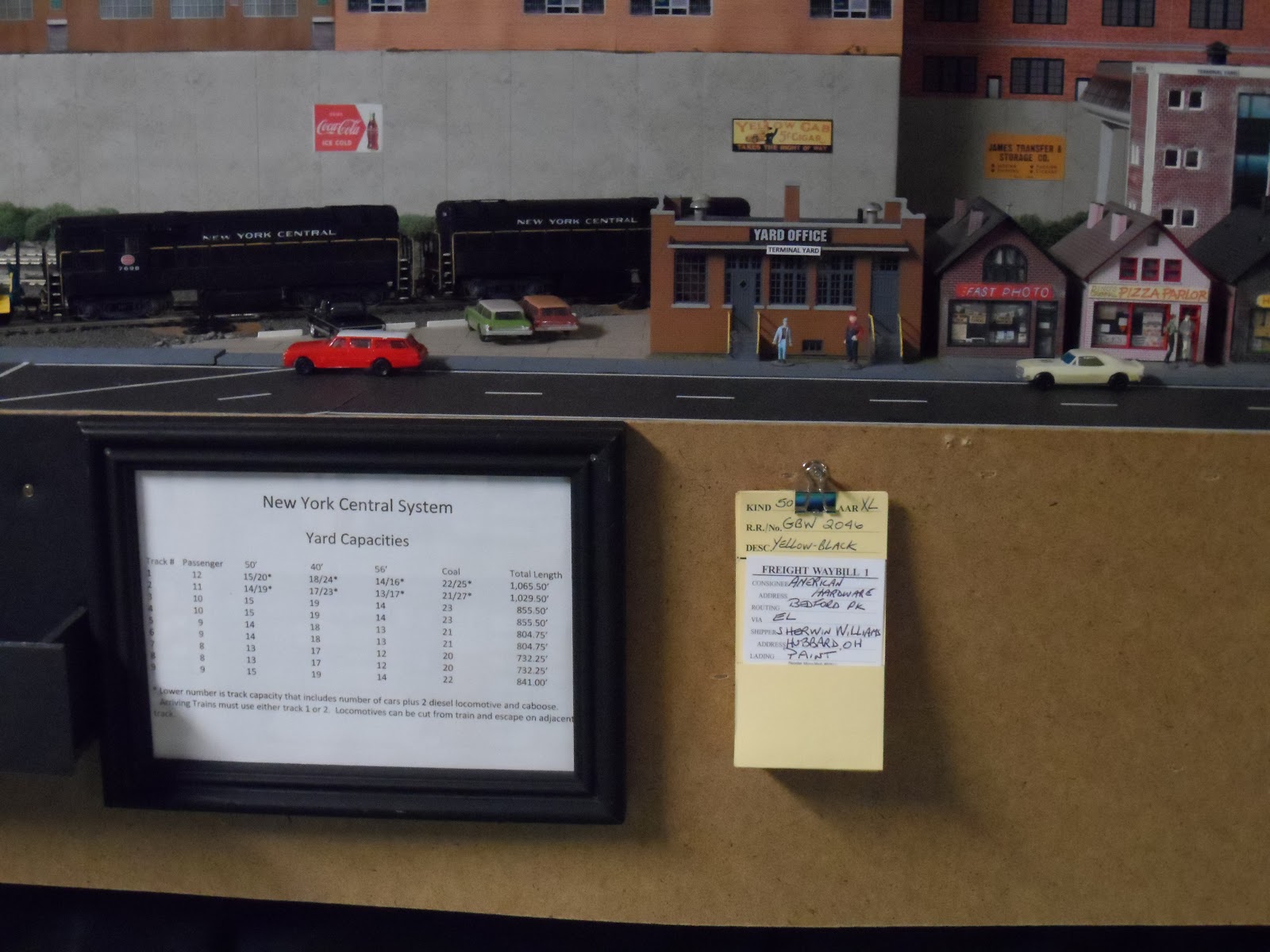 We'll cut it here today with the empty clip hanging from the nail. The Terminal Yard transfer train EB-2 is ready to go from track 3. The local freight train, the Morning Industrial Job or Afternoon Industrial Job is ready in track 2 and the LIRR block is ready for interchange in track 3.